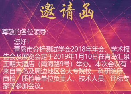 青島市分析測(cè)試學(xué)會(huì)2018年年會(huì)、學(xué)術(shù)報(bào) 會(huì)及展覽會(huì)定于2019年1月10日在青島匯泉 王朝大...